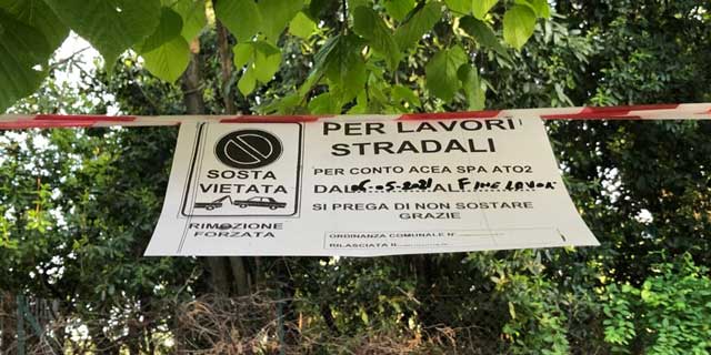 Bisogna arrivare a giovedì 6 maggio perché qualcosa si muova. Sul posto è arrivata una ruspa ed è stato affisso un cartello di divieto di sosta e dal quale si apprende che i lavori stradali per conto di Acea Ato 2 avranno luogo “dal 6 maggio fino a fine dei lavori”.