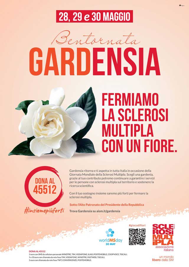 “Bentornata Gardensia”, una gardenia per dare un aiuto. I fondi raccolti con l’iniziativa andranno infatti a sostenere la ricerca scientifica e permetteranno ad AISM di garantire le risposte di cura, di assistenza e di supporto per le persone affette da sclerosi multipla sul territorio, ora più che mai fondamentali.