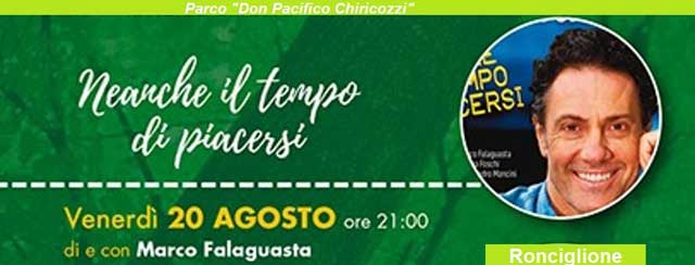 Si comincia venerdì 20 agosto alle 21 con Marco Falaguasta, che sarà l’assoluto mattatore di “Neanche il tempo di piacersi”, spettacolo scritto e diretto dallo stesso artista, che si cimenta oggi con le modalità dello storytelling in una satira divertente e impietosa della nostra società, dei nostri costumi e dei rinnovati linguaggi, dai quali noi “adulti” siamo sempre più spesso tagliati fuori.