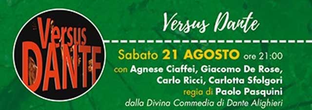 Il giorno dopo, sabato 21 e sempre alle 21, la serata sarà dedicata a Dante Alighieri con Agnese Ciaffei, Giacomo De Rose, Carlo Ricci, Carlotta Sfolgori pronti a portare in scena “Versus Dante”, una discesa nella Commedia dantesca per un’opera dedicata al mistero, alla partita fra enigma e nulla, fra divino e selva.