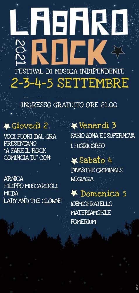 Labaro Rock Festival si tiene nel Parco Marta Russo; tutti gli appuntamenti sono a partire dalle 21 con ingresso libero e nel rispetto delle norme anti Covid-19.