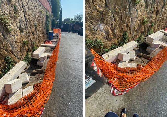Ci sono giunte numerose segnalazioni in merito; fra le tante citiamo quella di Francesca B. che così ci scrive: “Trovo intollerabile che questa pubblica amministrazione che mi fa attendere sei mesi per autorizzarmi a rimuovere un cespuglio all’interno della mia proprietà a causa dell’impatto paesaggistico che la rimozione dello stesso può avere sulla zona, sprechi tempo e denaro pubblico (cioè dei cittadini, cioè mio) iniziando dei lavori senza poi finirli mandando in malora i materiali e creando disagio a tutti. Vogliamo parlare dell’impatto paesaggistico di ciò che si vede in questa foto?”