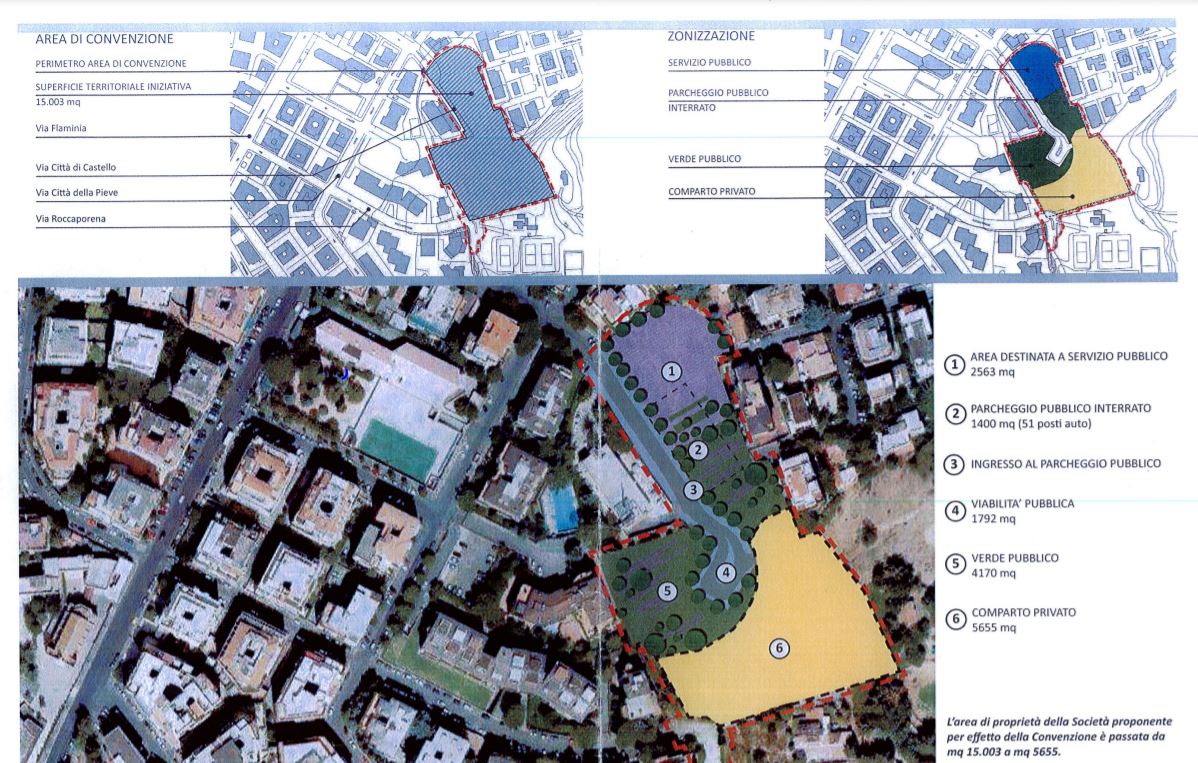 Nel 2006 il XX Municipio (oggi XV) esprime parere favorevole con prescrizioni. Nel 2011, la Regione Lazio e il Comune di Roma, in seguito all’esito della Conferenza dei Servizi, firmano l’Accordo di Programma e la Convenzione urbanistica che consentono al costruttore Parnasi di cementificare l’area verde del Fleming. Nel 2012, l’area viene recintata e il progetto di urbanizzazione reso noto, con tanto di planimetria: quattro palazzine, due spazi adibiti al verde pubblico attrezzato, un parcheggio interrato di circa 50 posti e un’area destinata a servizio pubblico.