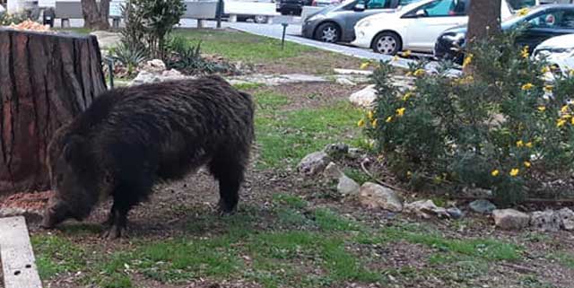 Più del look il cinghiale ha gradito la massa di immondizia raccolta nella nuova area che di recente Ama ha creato con grande gioia dei poveri abitanti dei civici che si affacciano sulla piazza .