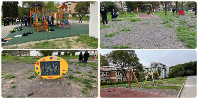 Abbattuti 19 alberi (6 erano nel progetto iniziale, 13 sono risultati essere ammalati in corso d’opera) e sostituiti con nuove piantumazioni, sono state risistemate le vecchie panchine, riqualificate le aree ludiche, installati nuovi giochi, restaurata la base del piccolo monumento, verniciate le recinzioni, creata un’area per anziani (in via di completamento).