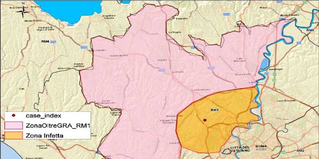 Fra le prime misure di regolamentazione vi è l’individuazione delle zone coinvolte. La prima, di 65 chilometri quadrati, di colore giallo nella piantina e definita “zona infetta provvisoria“, comprende un pezzo dell’Insugherata ed è delimitata a Nord-Nord Ovest dal Grande Raccordo Anulare; a Est-Sud Est dal Tevere; a Sud, dalla Circonvallazione Clodia, via Cipro, via di San Tommaso D’Acquino, via Arturo Labriola, via Simone Simoni, via Pietro De Cristofaro, via Baldo Degli Ubaldi e a Sud-Ovest da via Boccea.