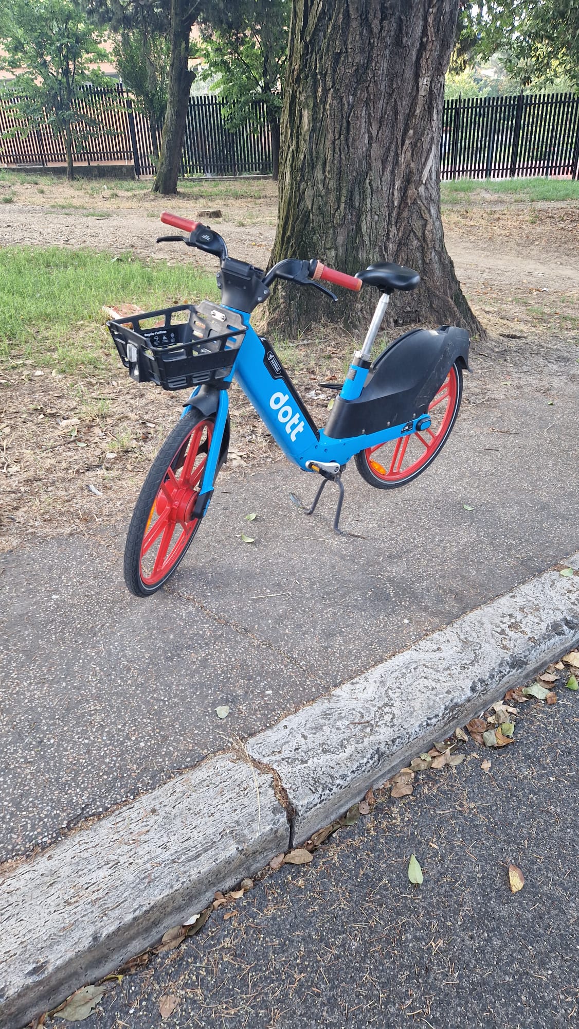 La strada dove abito, via del Podismo, sembra comunque essere particolarmente interessata al fenomeno dell’abbandono in posizioni che oserei definire quanto meno incivili di questi veicoli elettrici sia dei monopattini di Uber che delle bici elettriche di Dott.