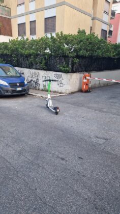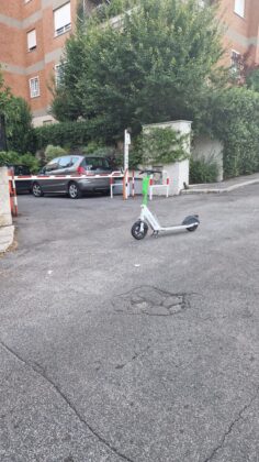 Buon giorno direttore questa mattina uscendo dalla stradina del palazzo dove abito ho trovato parcheggiato in mezzo alla strada un monopattino di Uber Lime che ostruiva completamente l’accesso e l’uscita.