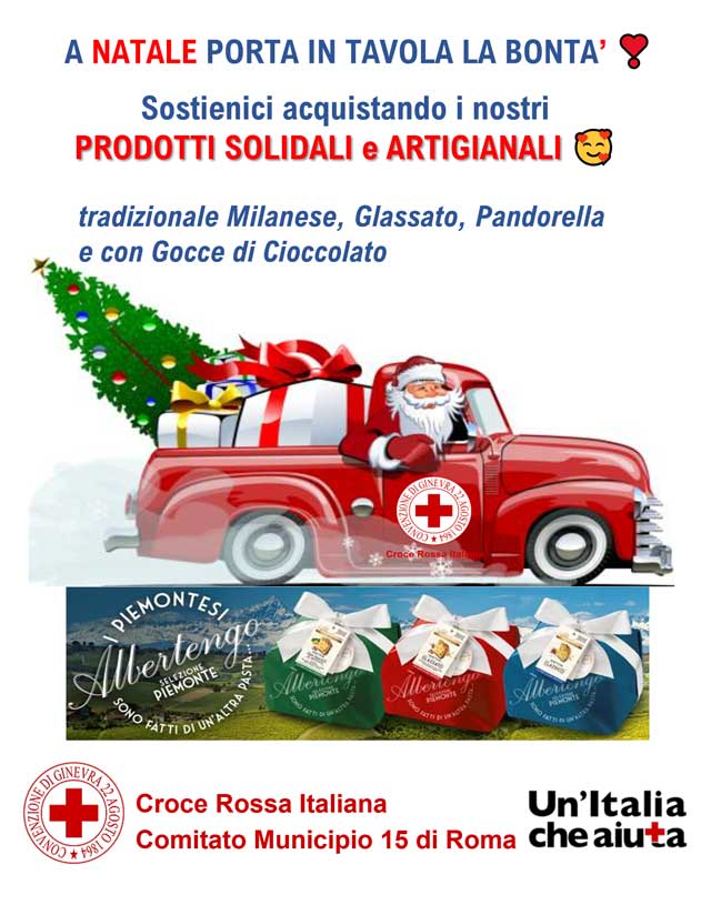 La Croce Rossa Italiana – Comitato Municipio 15 informa che domenica 10 dicembre, nel villaggio di Natale accanto all’Ice Park di Ponte Milvio (al termine di via dei Robilant), allestirà una vendita solidale di panettoni artigianali Albertengo per una raccolta fondi a supporto delle numerose attività sociali a favore della popolazione del Municipio XV. Lo stand sarà aperto dalle 10 alle 18.