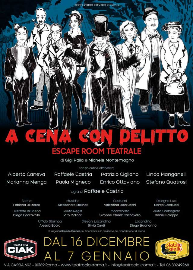 Il Natale si tinge di mistero al Teatro Ciak. Ironico e coinvolgente nel vero senso della parola, arriva A cena con delitto – escape room teatrale, nuovo appuntamento interattivo della storica compagnia del Teatro Stabile del Giallo, in scena per tutte le festività natalizie, da sabato 16 dicembre a domenica 7 gennaio.