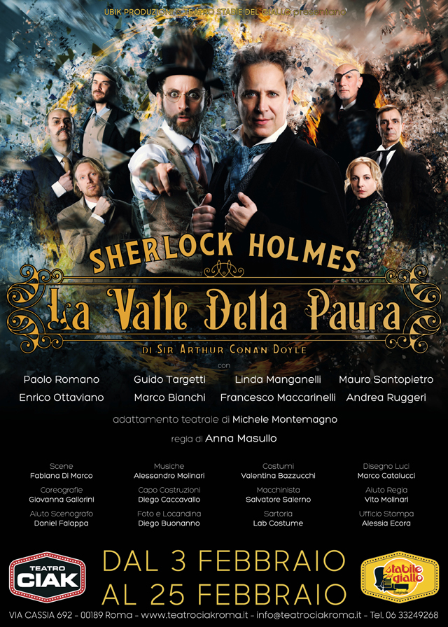 In un vertiginoso e inimitabile intreccio di generi è in arrivo al Teatro Ciak – via Cassia 692 – una delle più famose peripezie del mitico e incontrastato principe dei detective, Sherlock Holmes – La valle della paura di Sir Arthur Conan Doyle.