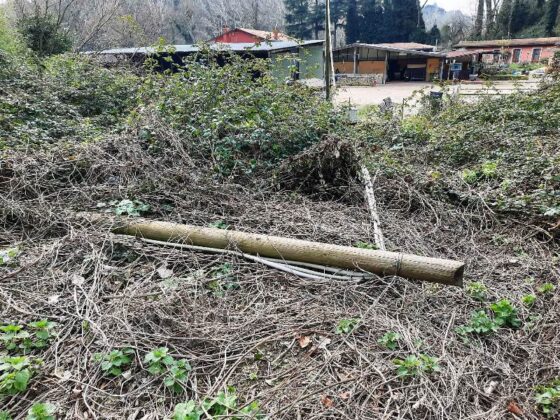 A terra c’è addirittura un palo con i cavi dell’alta tensione messi, almeno così sembra, all’interno di un grosso corrugato che come un serpentone raggiunge una cassetta dell’Enel. Tutto regolare?
