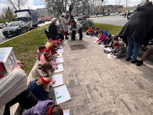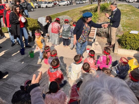 Protagonisti della giornata sono stati però i bambini, ognuno con una fascetta sulla testa riportante la loro risposta alla domanda “cosa è l’amore?”, ognuno, a turno, col pennello in mano e poi tutti insieme a descrivere l’evento con dei disegni.