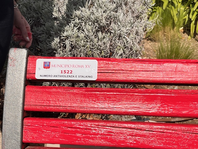 La panchina rossa, come tutte le altre distribuite sul territorio, sarà infatti simbolo del rifiuto della violenza sulle donne e ricorderà, attraverso una targhetta, che il numero di telefono 1522, gratuito e attivo 24 ore su 24, risponde alle richieste di aiuto e sostegno delle vittime di violenza e stalking.