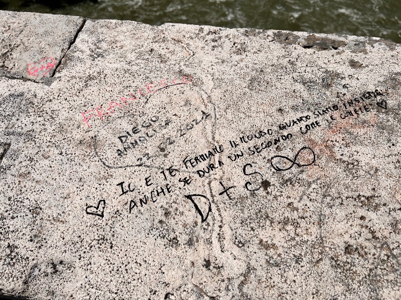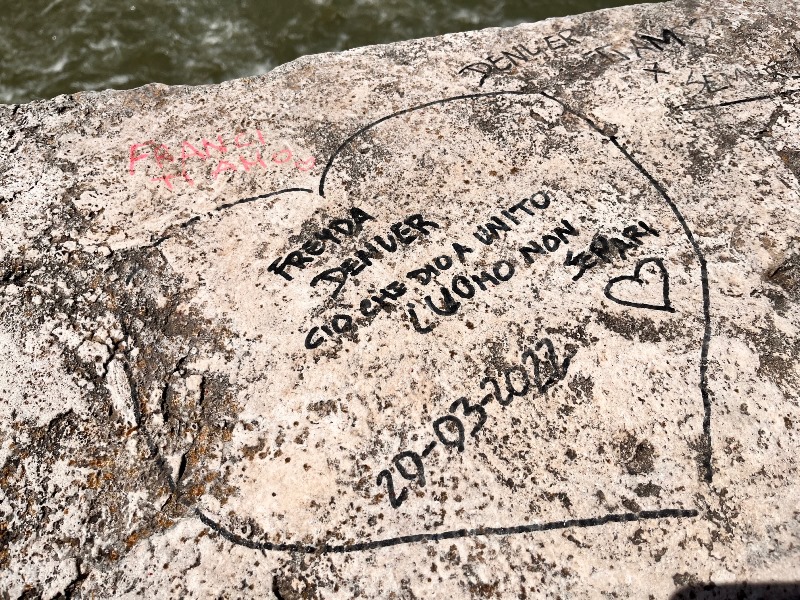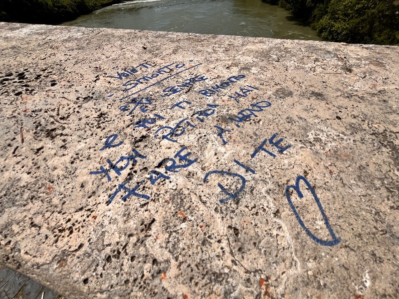 Diciamolo subito. Se al Colosseo uno straniero incide le iniziali tutti gridano allo scandalo, si stracciano le vesti, scattano le sanzioni, volano le denunce. Deturpare invece il ponte più antico di Roma pare rientrare nella normalità delle cose. Anzi è pittoresco. Non s’è mai visto qualcuno con una divisa intervenire.