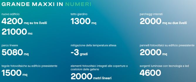 Il Maxxi sarà sostenibile. Prevista infatti una serie di interventi per abbattere i consumi energetici e tendere alla carbon neutrality, tra cui l’integrazione di pannelli fotovoltaici di ultima generazione sulle coperture, l’utilizzo di illuminazione a led, la sostituzione delle caldaie a gas con pompe di calore, il riciclo e riuso degli allestimenti.