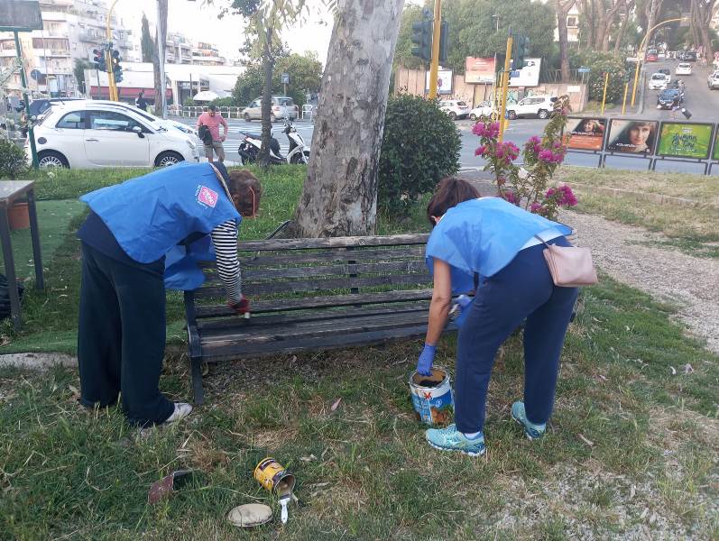 A darsi da fare con sacchi, guanti e rastrelli, e qualcuno anche con pennelli e vernici, sono stati i volontari del gruppo Retake Fleming Ponte Milvio e quelli del Comitato I Quartieri della Stazione di Vigna Clara e Dintorni che a margine dei lavori hanno espresso il desiderio di adottare l’area.