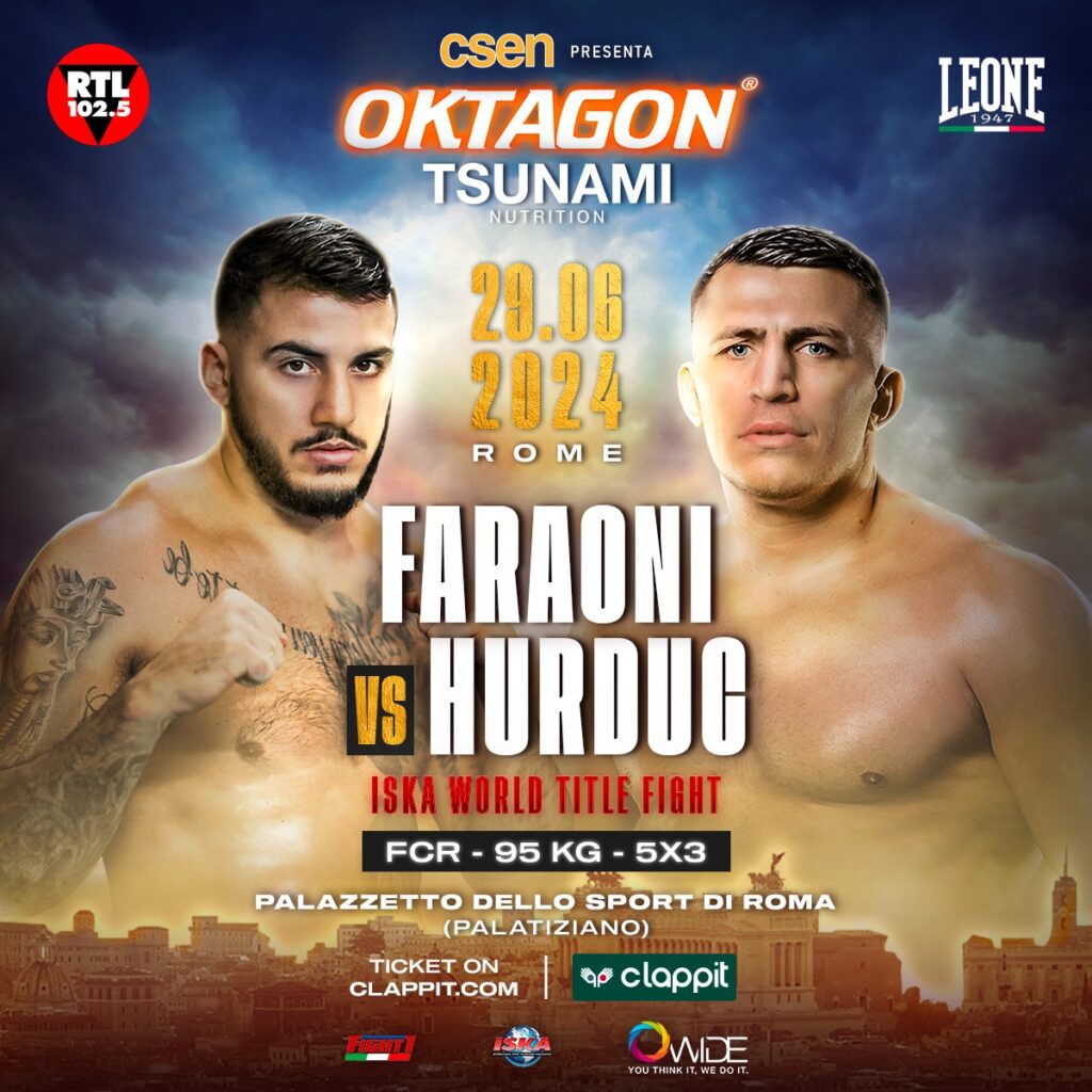Per l’occasione il match più atteso è il mondiale ISKA (International sport kickboxing association) che vedrà il detentore della cintura (categoria fino a 95 chili), il kickboxer romano Mattia Faraoni, affrontare il campione romeno Danut Hurduc. Il trentatreenne atleta originario di Bârlad  si presenta a Roma con un invidiabile score: 52 match disputati (e 46 vittorie all’attivo).
