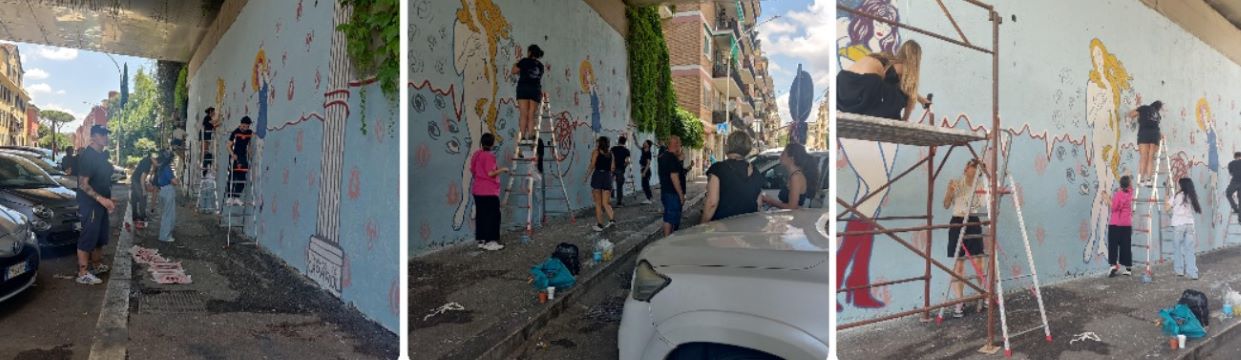 Un gruppo di studenti dell’Accademia delle Belle Arti di via Ripetta, sotto la direzione artistica di Mauro Pallotta, in arte MAUPAL (artista famoso anche per i suoi murales di papa Bergoglio dipinti sulle pareti del quartiere Borgo) realizza un progetto e lo propone a Tatiana Marchisio, assessore alla Cultura del Municipio XV, che lo accetta.