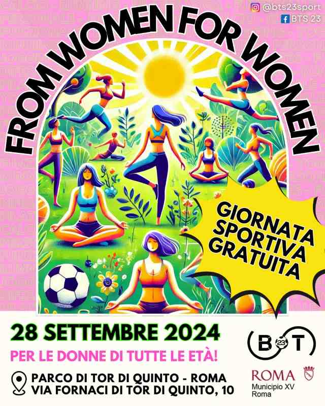 Si chiama “From Women for Women / Dalle Donne per le Donne” ed è un appuntamento sportivo gratuito per tutte le donne promosso e finanziato dal Municipio XV e organizzato dall’Associazione BTS23.