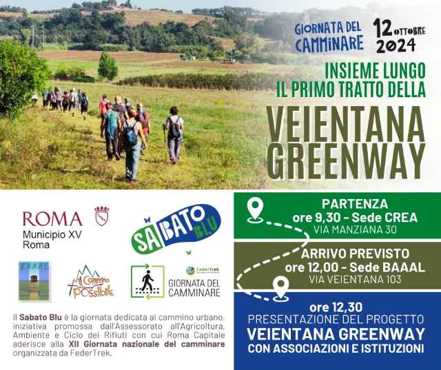 Guidati da accompagnatori volontari di FederTrek, l’evento si terrà sabato 12 ottobre e consiste in quindici percorsi di trekking urbano, uno per Municipio, a cui si può aderire attraverso il sito www.sabatoblu.roma.it