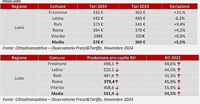 Tari tariffe e differenziata nel Lazio. I dati di Cittadinanzattiva