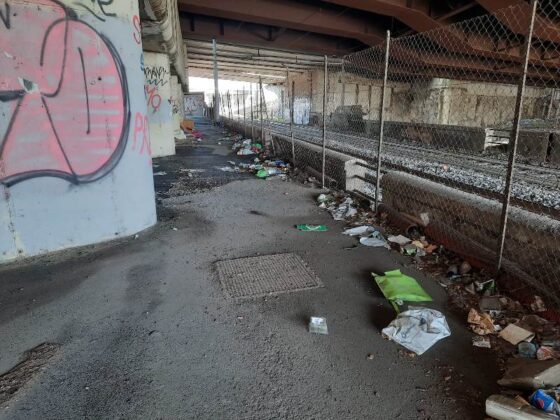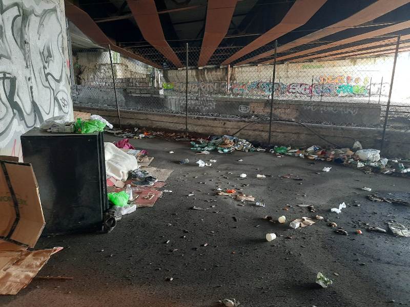 Se si raggiunge la stazione ferrovia “La Celsa” e si prosegue per circa 200 metri girando poi per la rampa a destra ci si ritrova nell’ampio parcheggio sotto la sopraelevata. Nonostante calcinacci, tazze del water e sacchetti di materiale edile vengano abbandonati “ordinatamente” ai piedi dei piloni in cemento armato, l’area si presenta appena appena pulita.