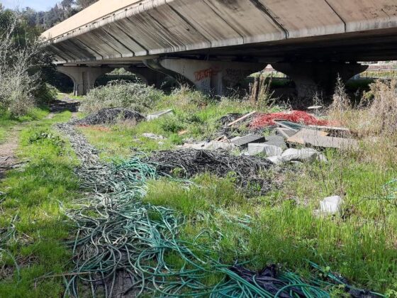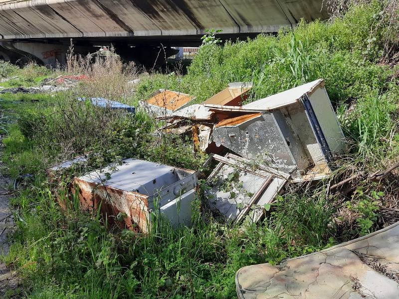 Chi ha scaricato quelle tonnellate di cavi elettrici lo ha fatto più volte e sicuramente con un mezzo pesante (a prima vista sembrano gli scarti di una qualche grande impresa). Il tutto nonostante le diverse telecamere collocate sui piloni che sorreggono il viadotto; lecito chiedersi se siano funzionanti e su cosa dirigono il loro sguardo.