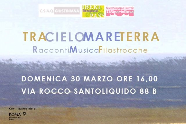 Domenica 30 marzo, nei locali dell’APS Giustiniana in via Rocco Santoliquido 88B, alle 16 si terrà lo spettacolo “Tra cielo, mare, terra: Musica, Racconti, Filastrocche”, che esplorerà il rapporto tra l’uomo e il desiderio di volare, viaggiare e spostarsi nel mondo.