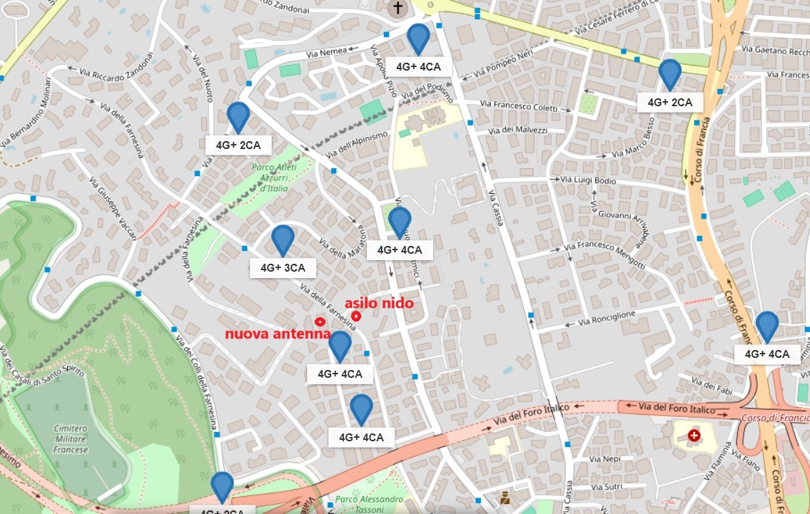 Ma non basta. Esattamente di fronte al 179 c’è l’asilo nido comunale “Farnesina”. E a trenta metri c’è un giardino pubblico per bambini. Fra i residenti e genitori è forte la preoccupazione per le potenziali conseguenze sulla salute dei piccini. Com’è possibile che ne sia stata autorizzata l’installazione?