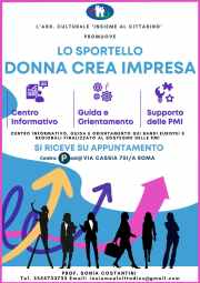Il 10 maggio alle 11.30 in via Cassia 701 presso il locale Centro post@, avrà luogo l’inaugurazione del Primo Sportello “Donna Crea Impresa”. L’idea nasce per sostenere e guidare le donne imprenditrici a sviluppare i loro progetti imprenditoriali, soprattutto dopo la pubblicazione dell’avviso regionale che prevede un contributo alle PMI fino a 100.000 a fondo perduto, dichiara la prof. Sonia Costantini ideatrice e realizzatrice del progetto dello sportello.