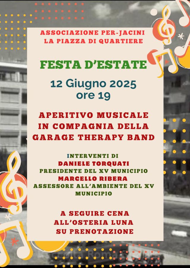 Organizzata dal Comitato “Per Jacini”, associazione sorta alcuni anni fa a tutela di questo spicchio del quartiere, nel giardino al centro della piazza dalle 19 si terrà una festa per salutare l’inizio dell’estate.