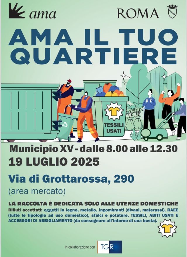 Sabato 19 luglio un Centro Mobile di raccolta dell’AMA sarà a disposizione dei cittadini in via di Grottarossa 290, nell’area mercato.