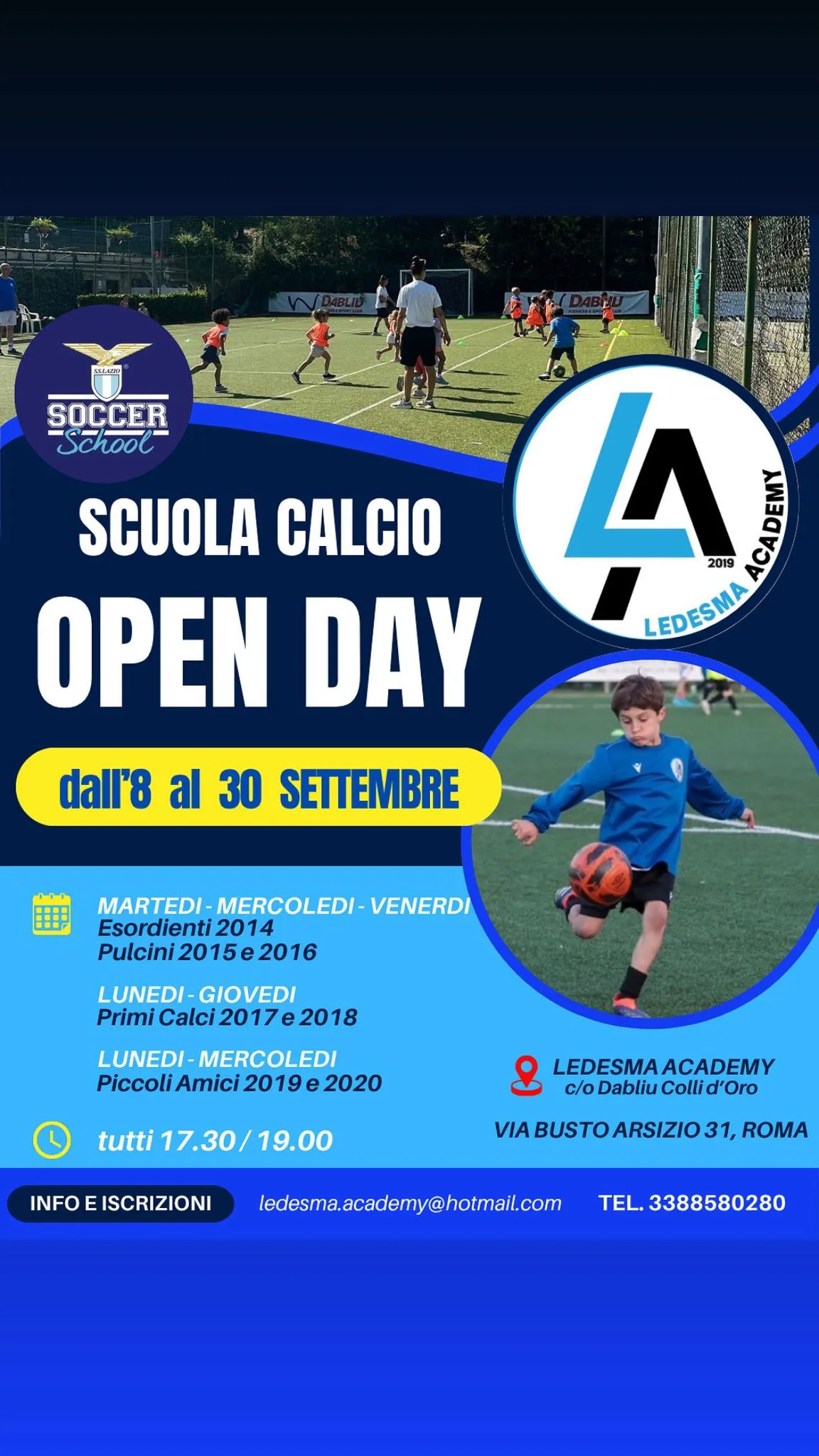 La Ledesma Academy è un club regolarmente affiliato a FIGC , LND , CONI ed è riconosciuta Club di 3^ Livello da parte della Federazione. Da questa stagione sportiva è direttamente legata alla SS Lazio, infatti è già annoverata tra le più importanti Lazio Soccer School.