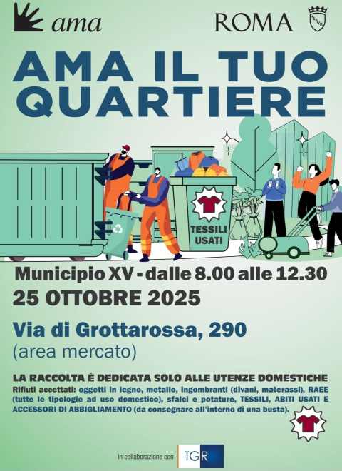 Sabato 25 ottobre un Centro Mobile di raccolta dell’AMA sarà a disposizione dei cittadini in via di Grottarossa 290, nell’area mercato.