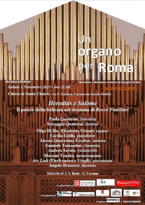 Ebbene sabato 1° novembre, dopo la messa delle 20, la Parrocchia Santa Chiara – in piazza dei Giuochi Delfici a Vigna Clara – offre l’occasione di ascoltare e guardare un melologo: Herodias e Salòme. Con l’accento sulla ‘o’, perché così dovrebbe essere.