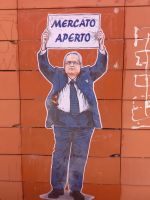 Il contesto è irresistibile: un’opera che con la scritta “mercato aperto” campeggia sul muro esterno del mercato, quello che da fuori a causa della sua struttura architettonica appare chiuso e nel quale Maupal si è tuffato con la sua ironia facendone un doppio gioco perfetto.