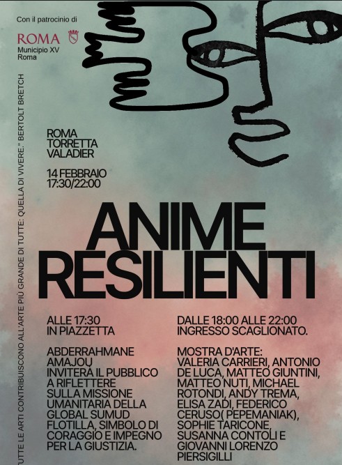 Sabato 14 febbraio, a Ponte Milvio la Torretta Valadier apre eccezionalmente il suo “portoncino azzurro mare” per ospitare Anime Resilienti, un progetto artistico e culturale ideato da Andy Trema e Abderrahmane Amajou e patrocinato dal Municipio XV.