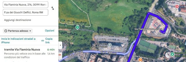 E lo stesso accade in uscita. Impostando il percorso inverso, cioè dal supermercato verso il centro città, ad esempio in direzione piazza dei Giochi Delfici, Google Maps suggerisce ancora una volta l’uscita diretta su via Flaminia.